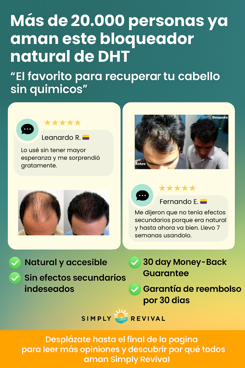 👉 ¡Claro que sí! Muchas mujeres también sufren caída por DHT y esta fórmula natural es apta para ellas. No contiene hormonas ni químicos agresivos.