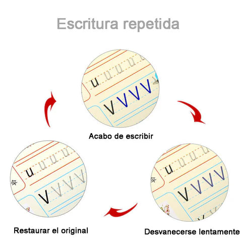 La tinta mágica desaparece sola en minutos, permitiendo que tu hijo use el mismo libro una y otra vez sin gastar más. ¡Aprende jugando, traza sin presión y repite hasta dominarlo!